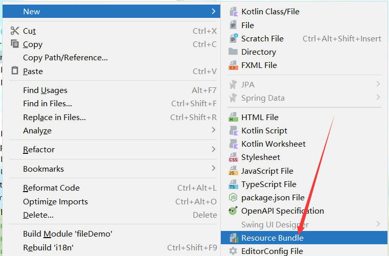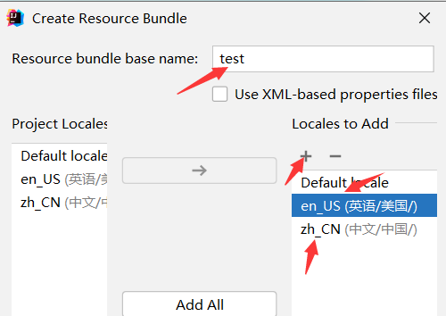 在basname指定的位置创建也就是在resources下创建i18n文件夹,在i18n中创建test.properties相关文件。