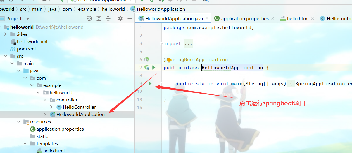 下面我们写一个页面,然后用springboot启动项目访问他。