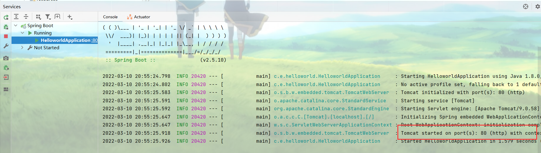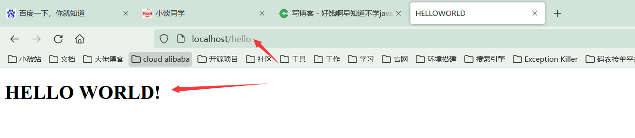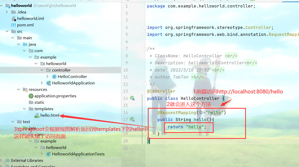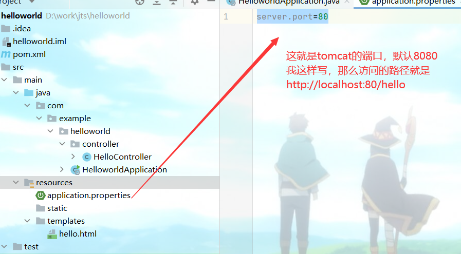 内置的Tomcat在80端口启动成功,我们访问http://localhost:80/hello试一下。